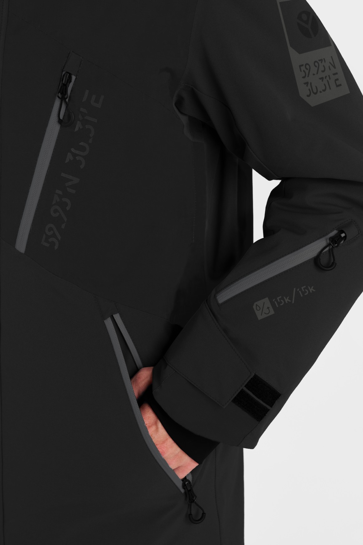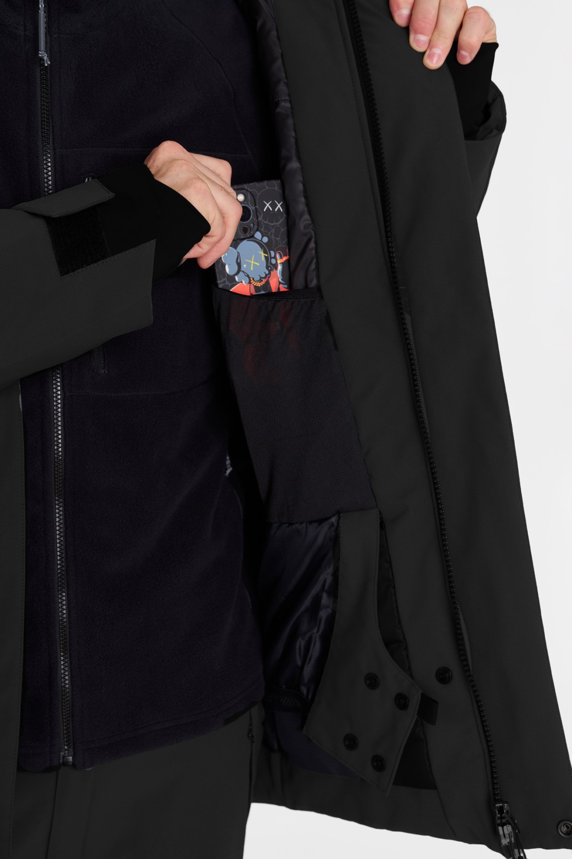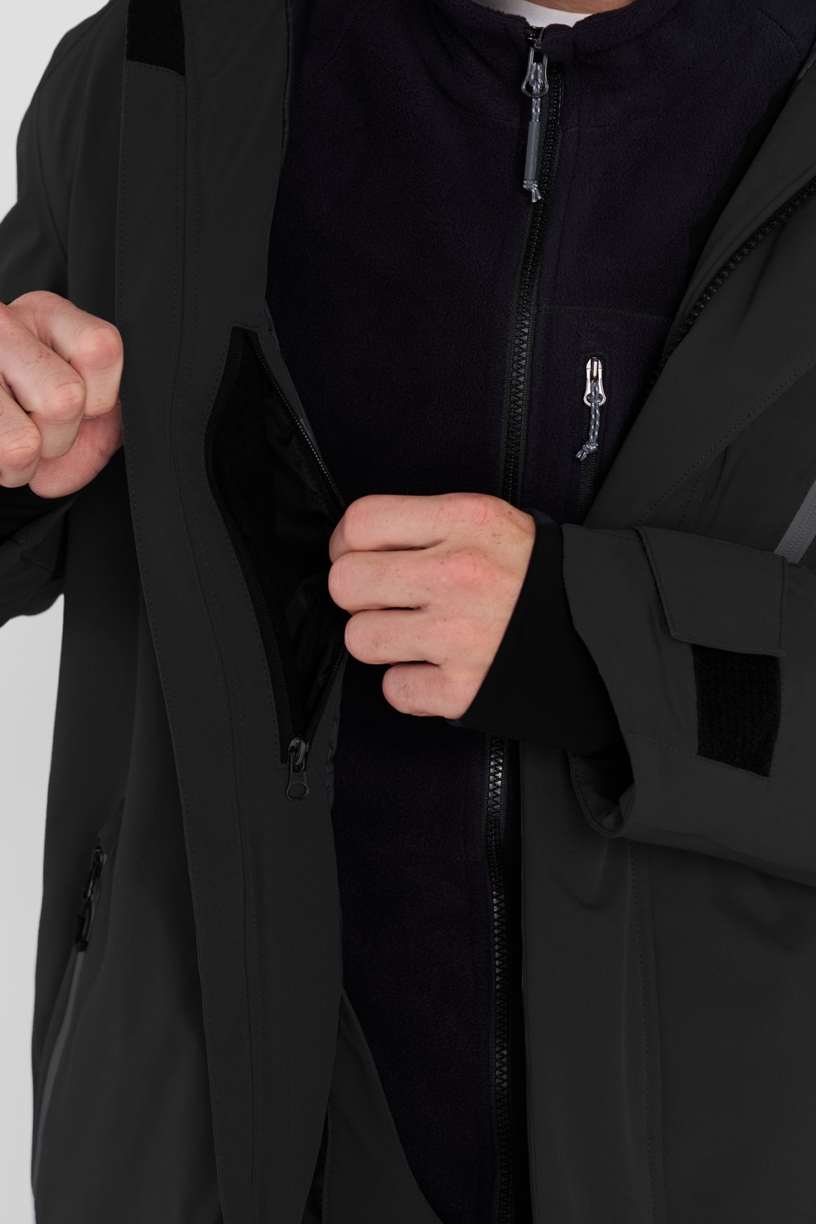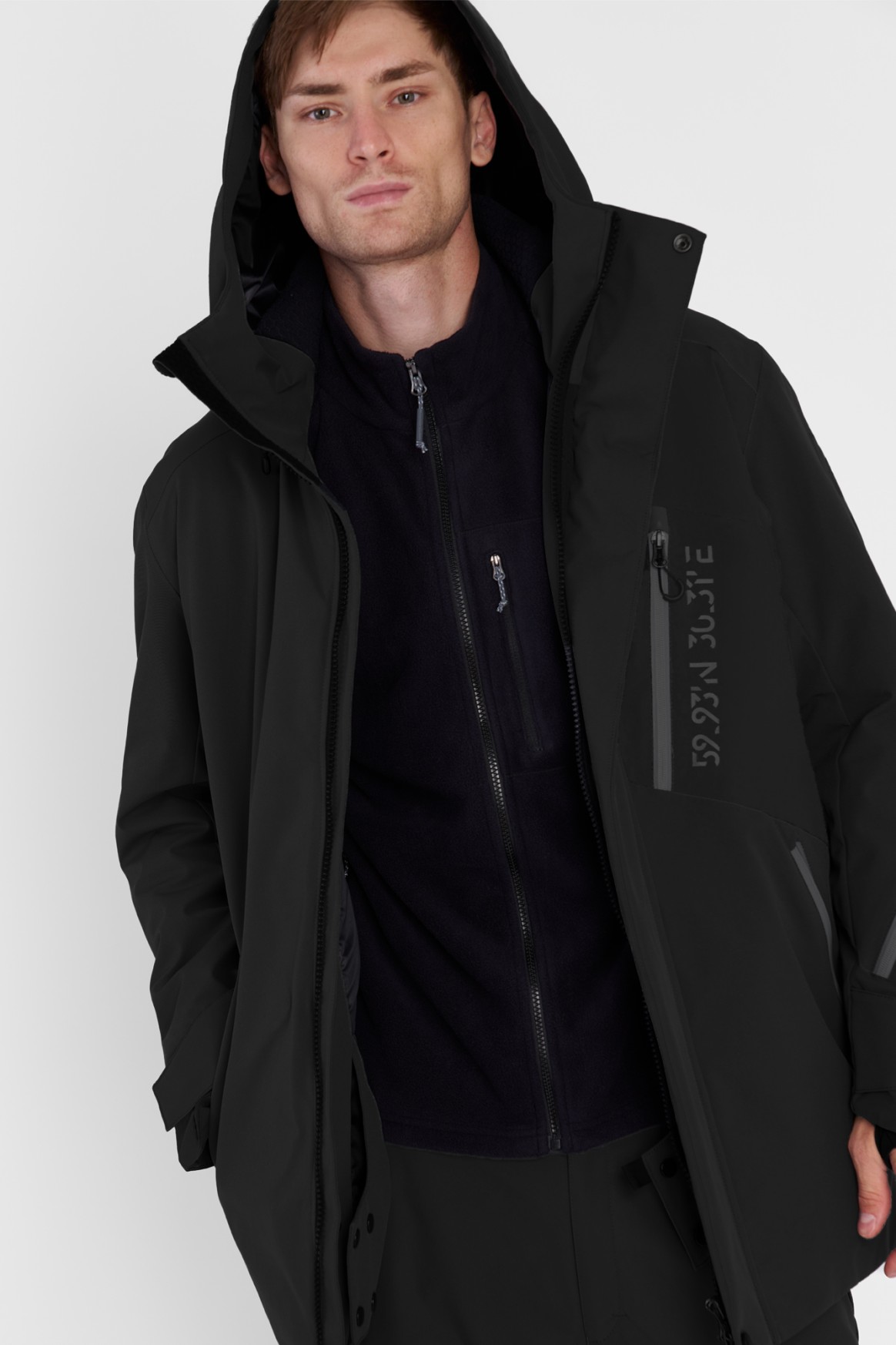 Удлиненная мужская куртка выполнена из ветрозащитного материала с мембраной с параметрами (15 000/15 000).