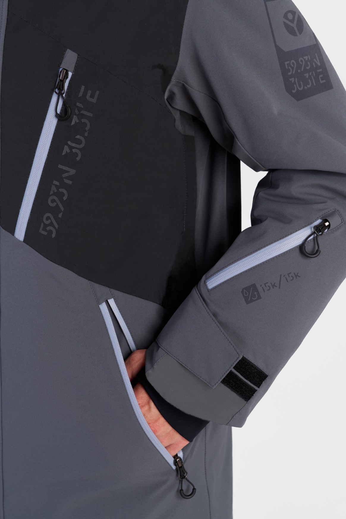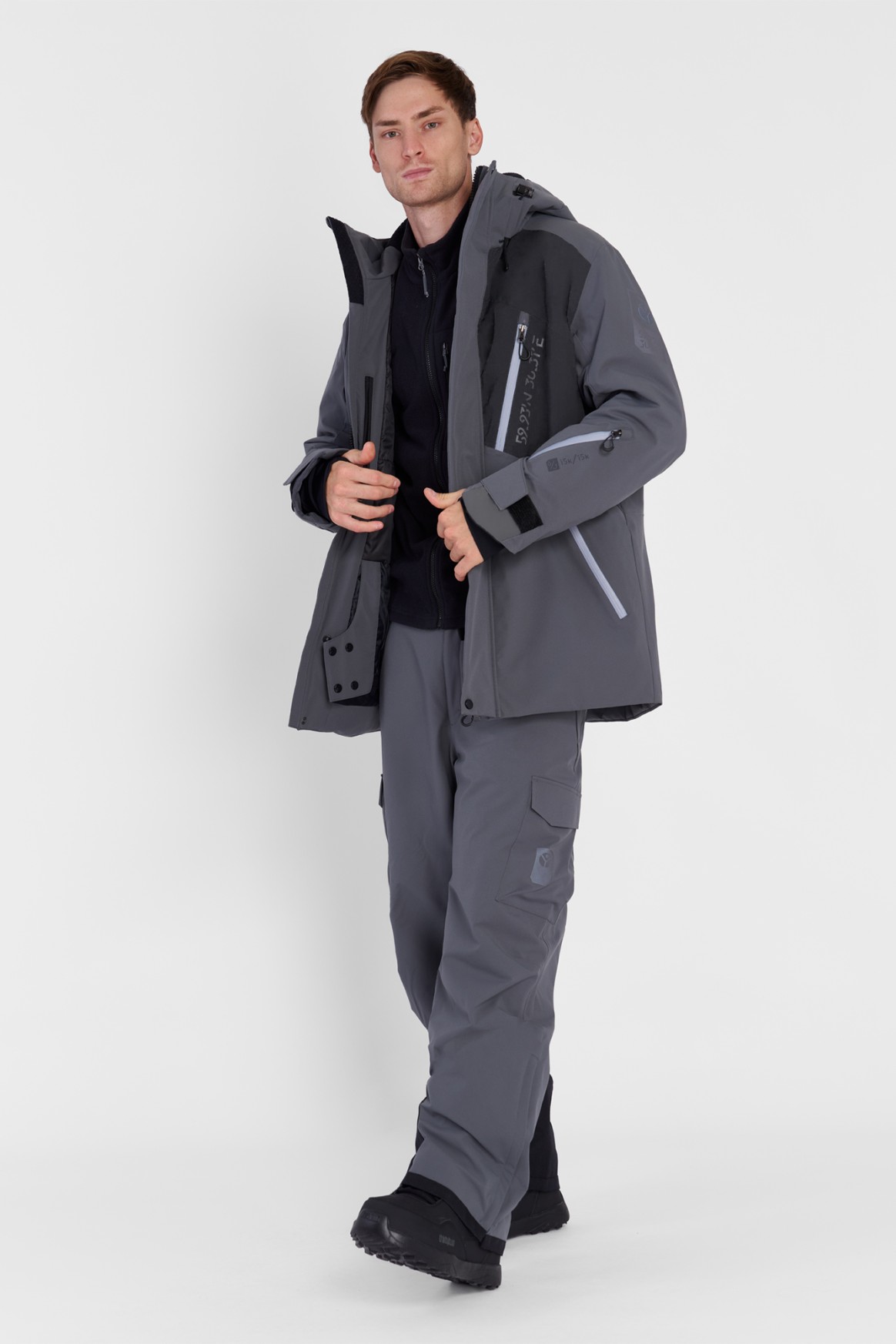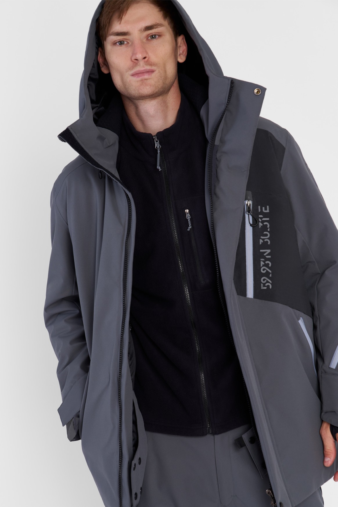 Удлиненная мужская куртка выполнена из ветрозащитного материала с мембраной с параметрами (15 000/15 000).