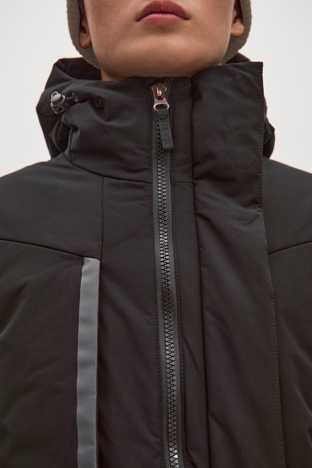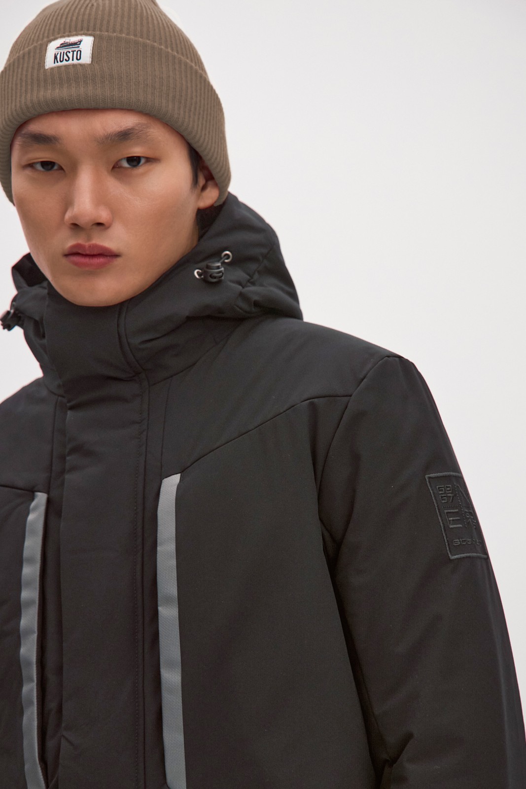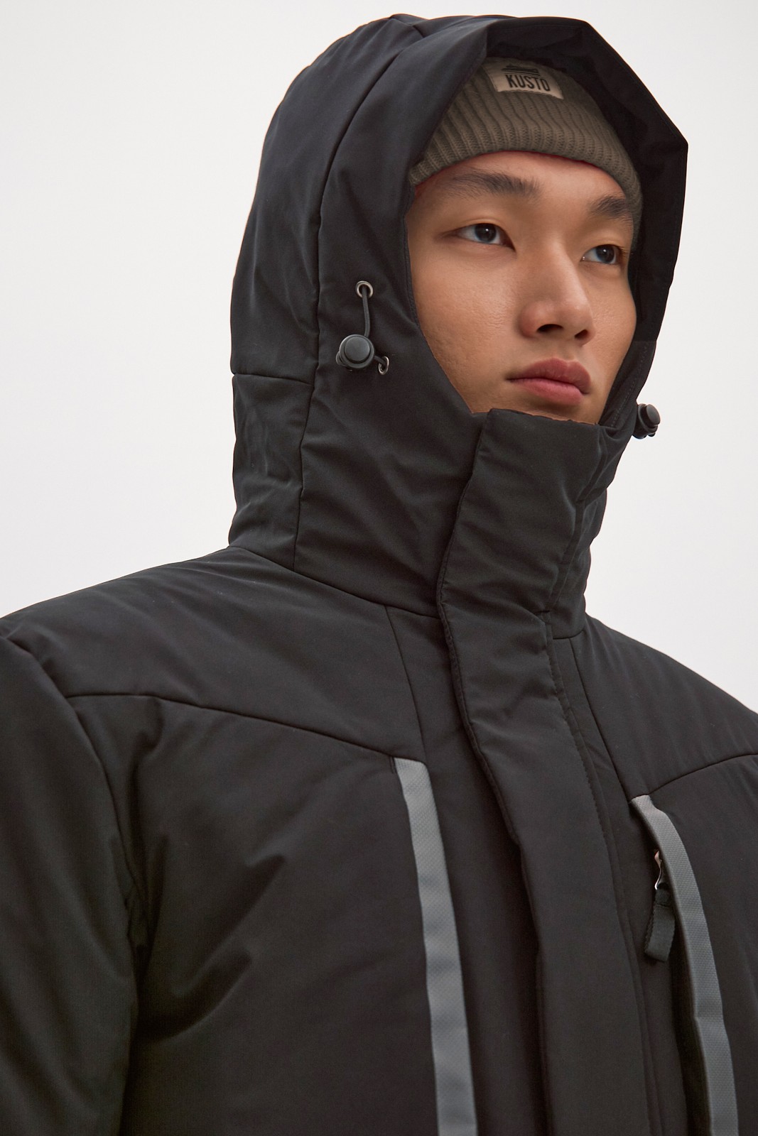 В этой модели использован спортивный профессиональный утеплитель с оптимальными показателями плотности и теплоемкости, который обеспечивает тепло и комфорт при неблагоприятных погодных условиях и активном движении. Отделка куртки-парки выполнена из светоотражающего текстиля для более безопасного передвижения в темное время суток.