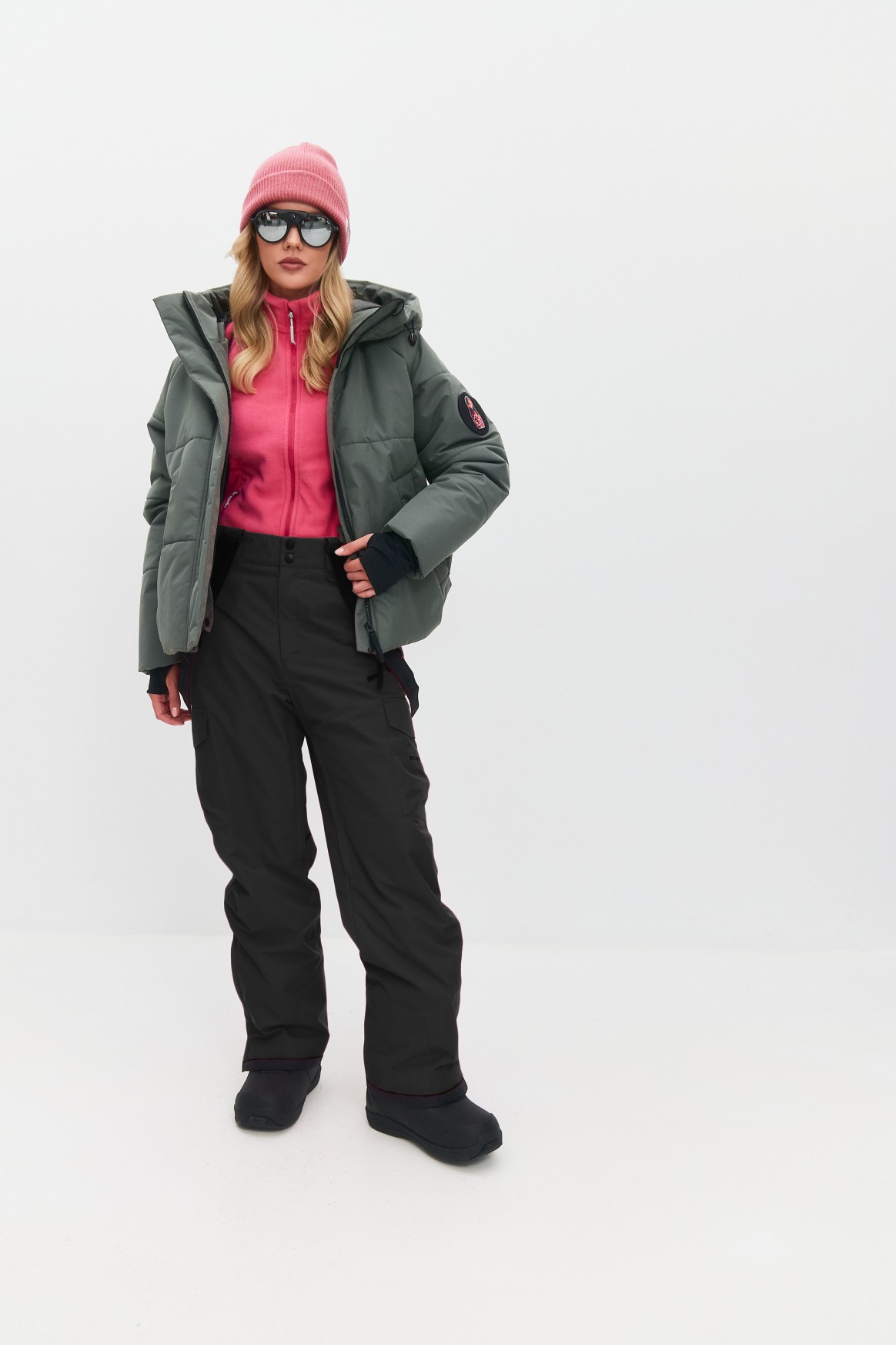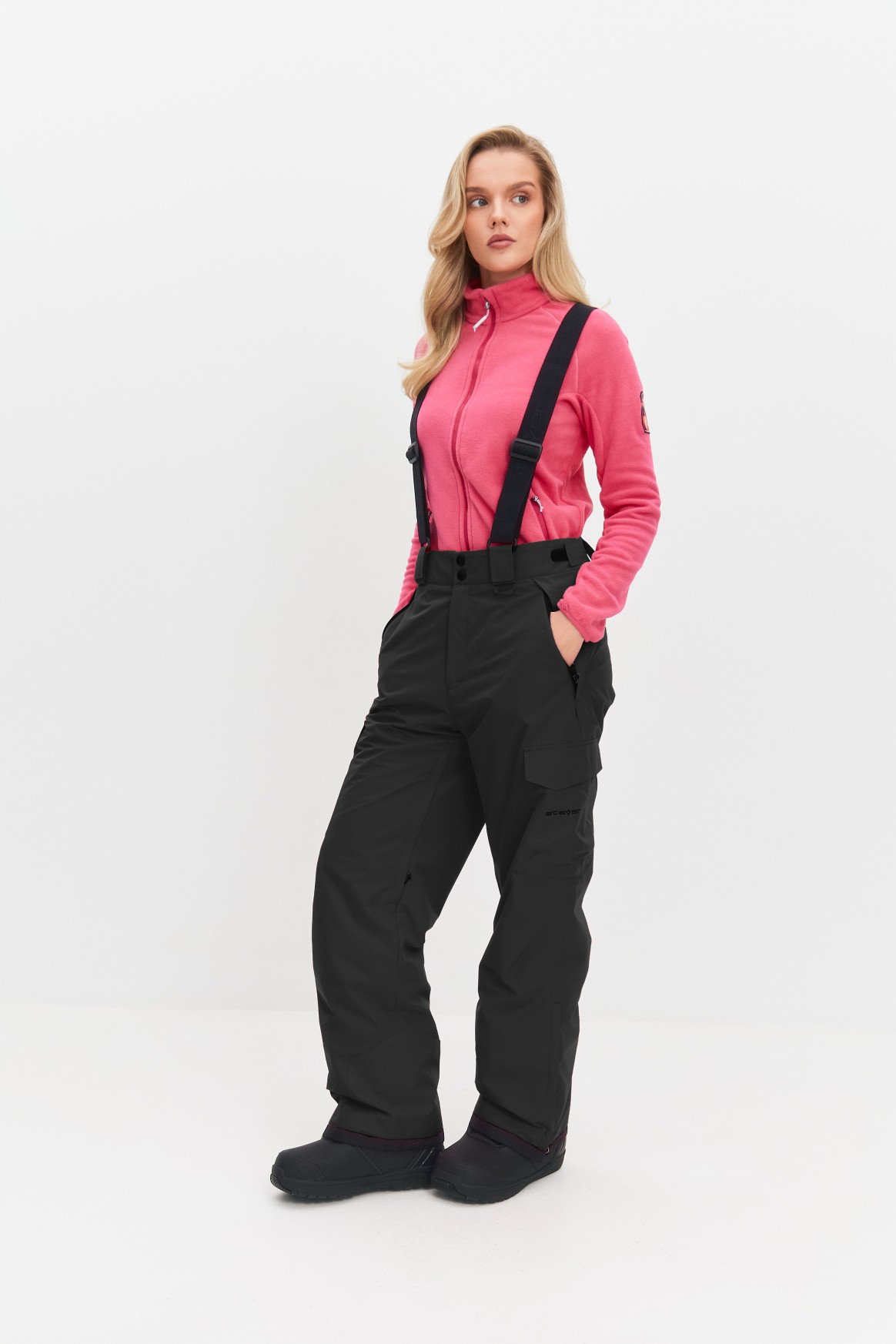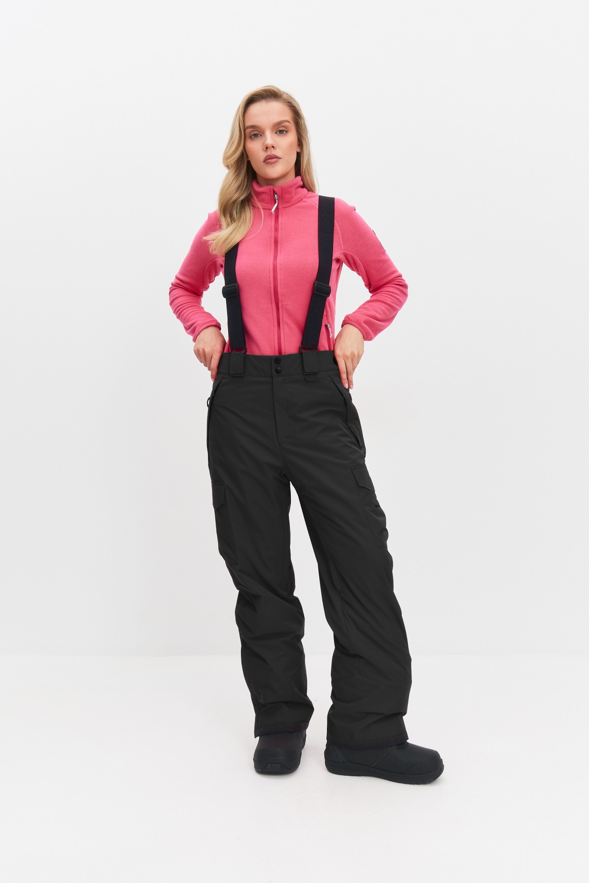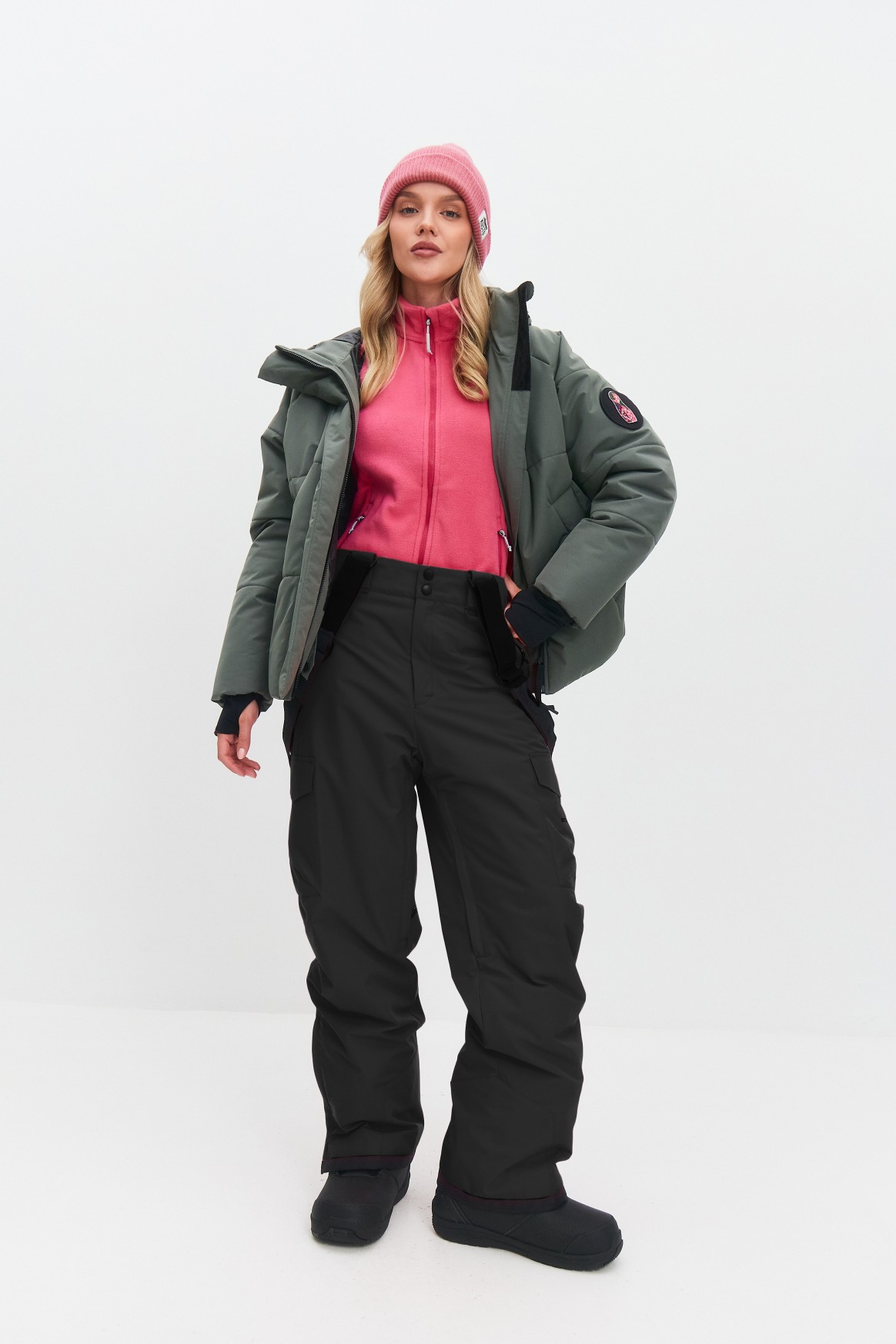 Трендовые брюки свободного кроя с утяжками на поясе могут выбрать как сноубордистки, так и горнолыжницы, предпочитающие трендовый оверсайз. Утяжки на поясе позволяют регулировать высоту посадки от высокой до расслабленной «на стиле».