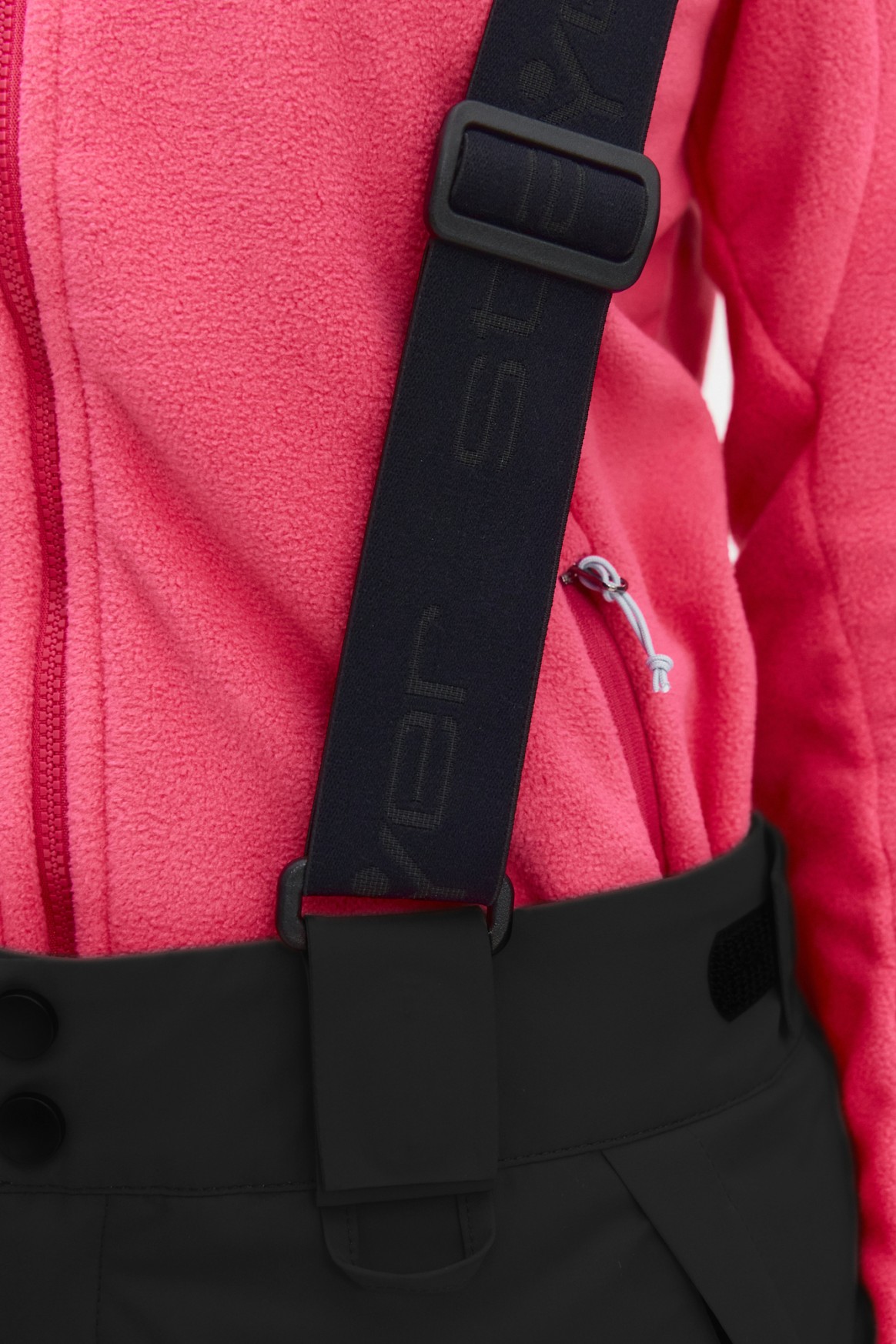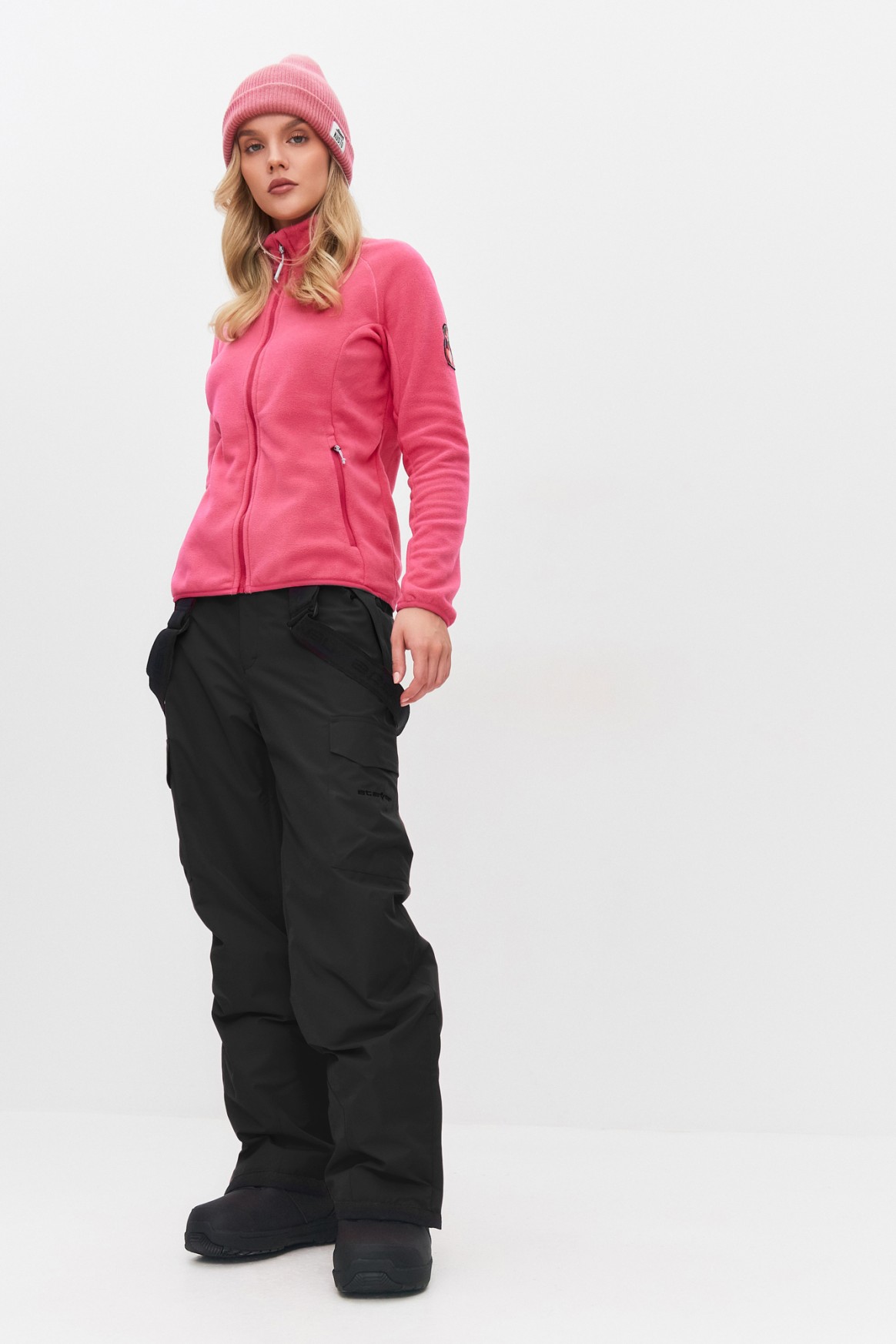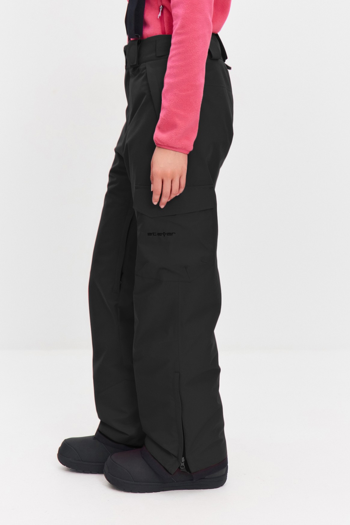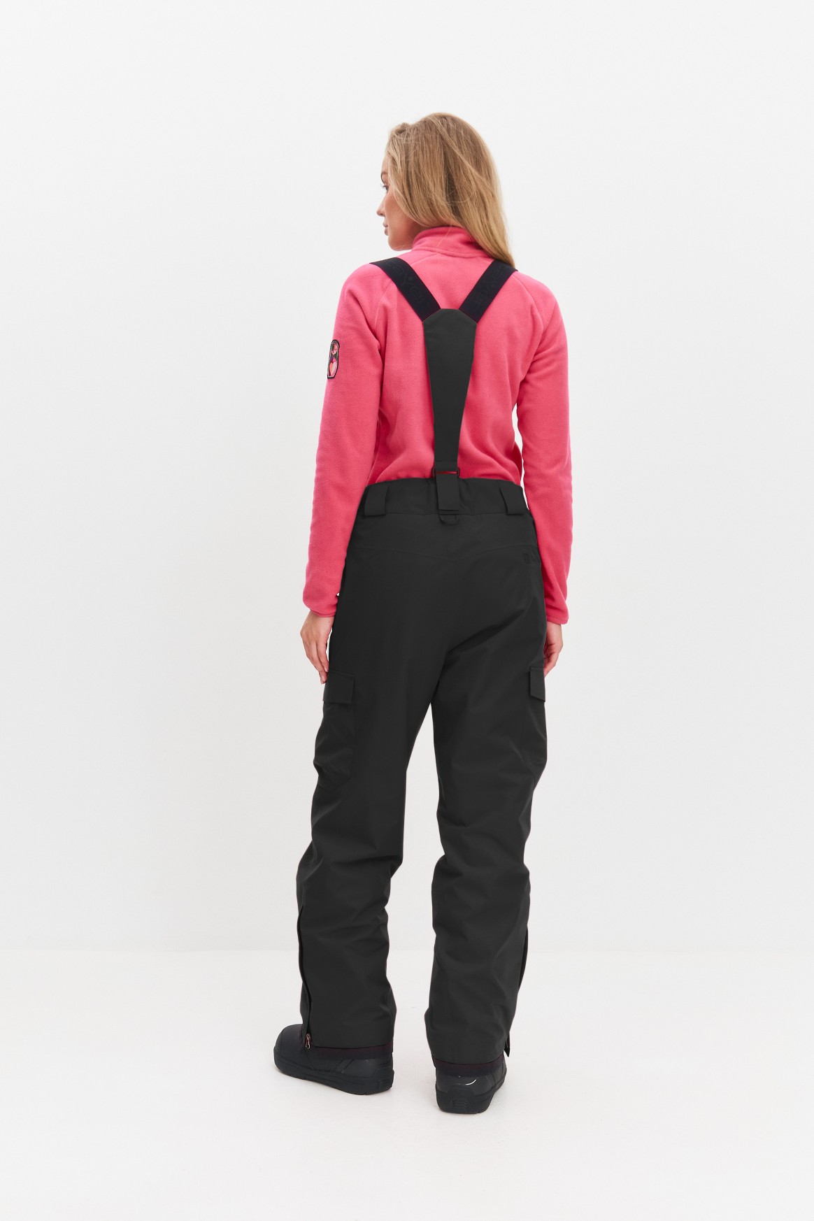 Трендовые брюки свободного кроя с утяжками на поясе могут выбрать как сноубордистки, так и горнолыжницы, предпочитающие трендовый оверсайз. Утяжки на поясе позволяют регулировать высоту посадки от высокой до расслабленной «на стиле».