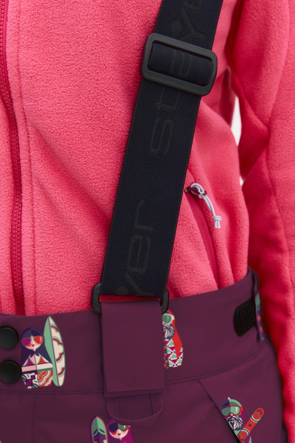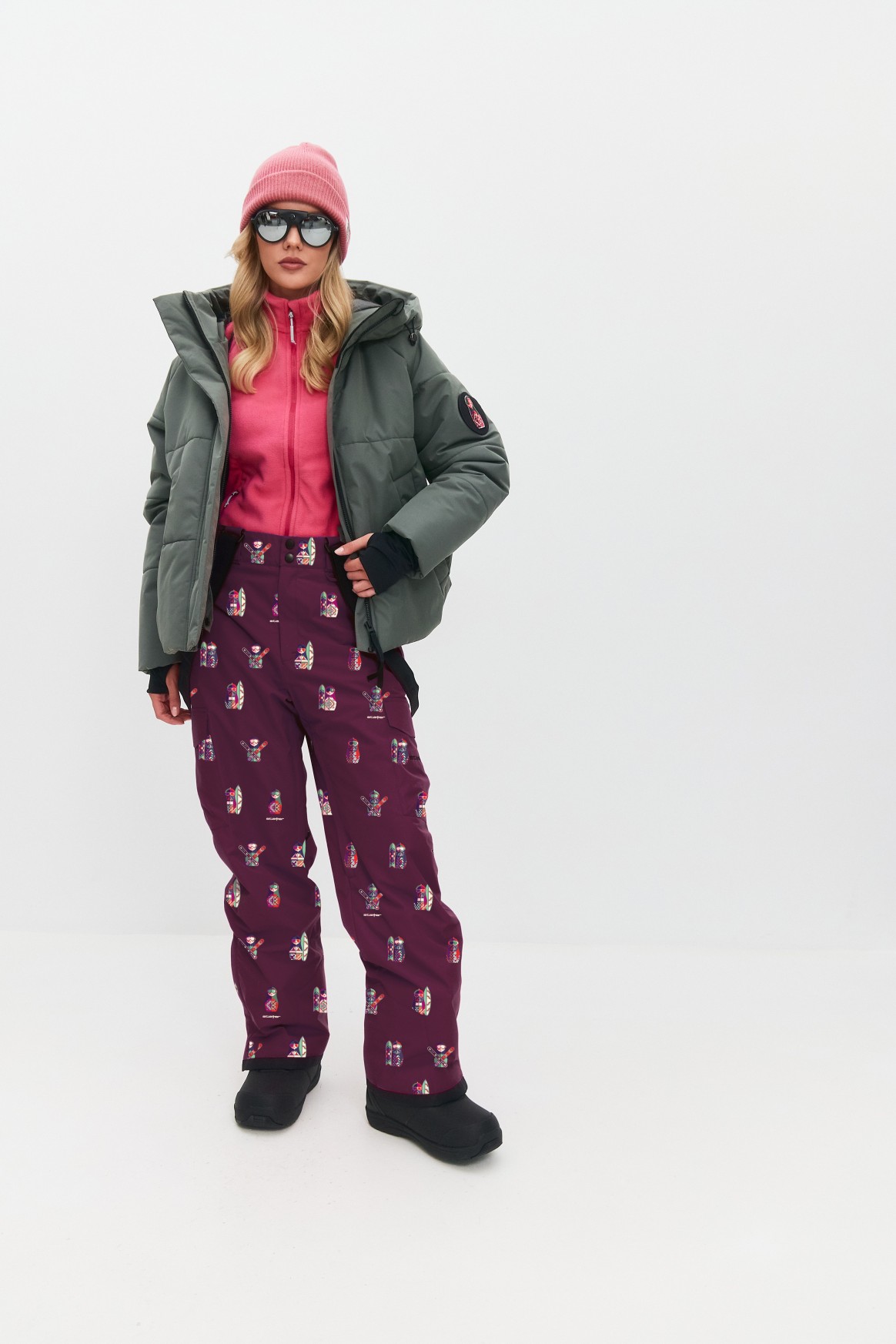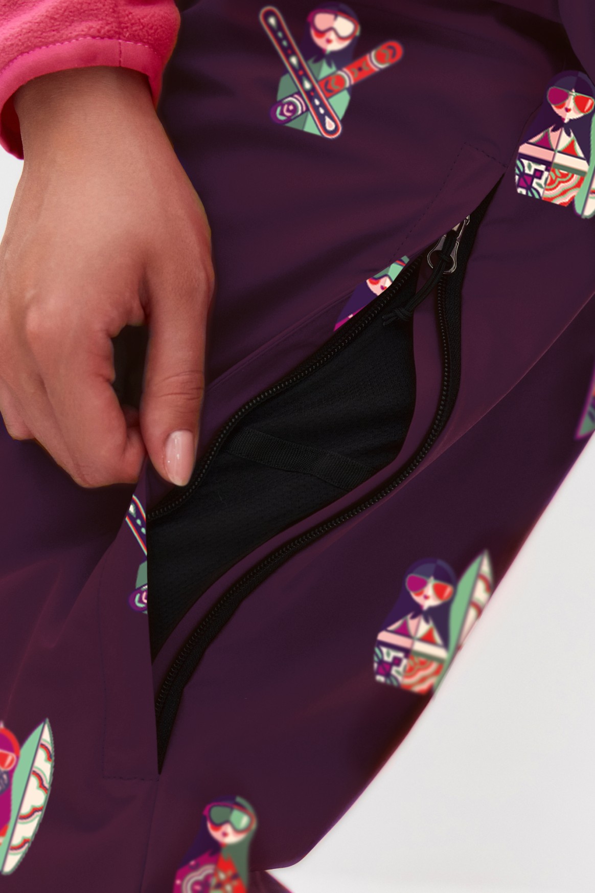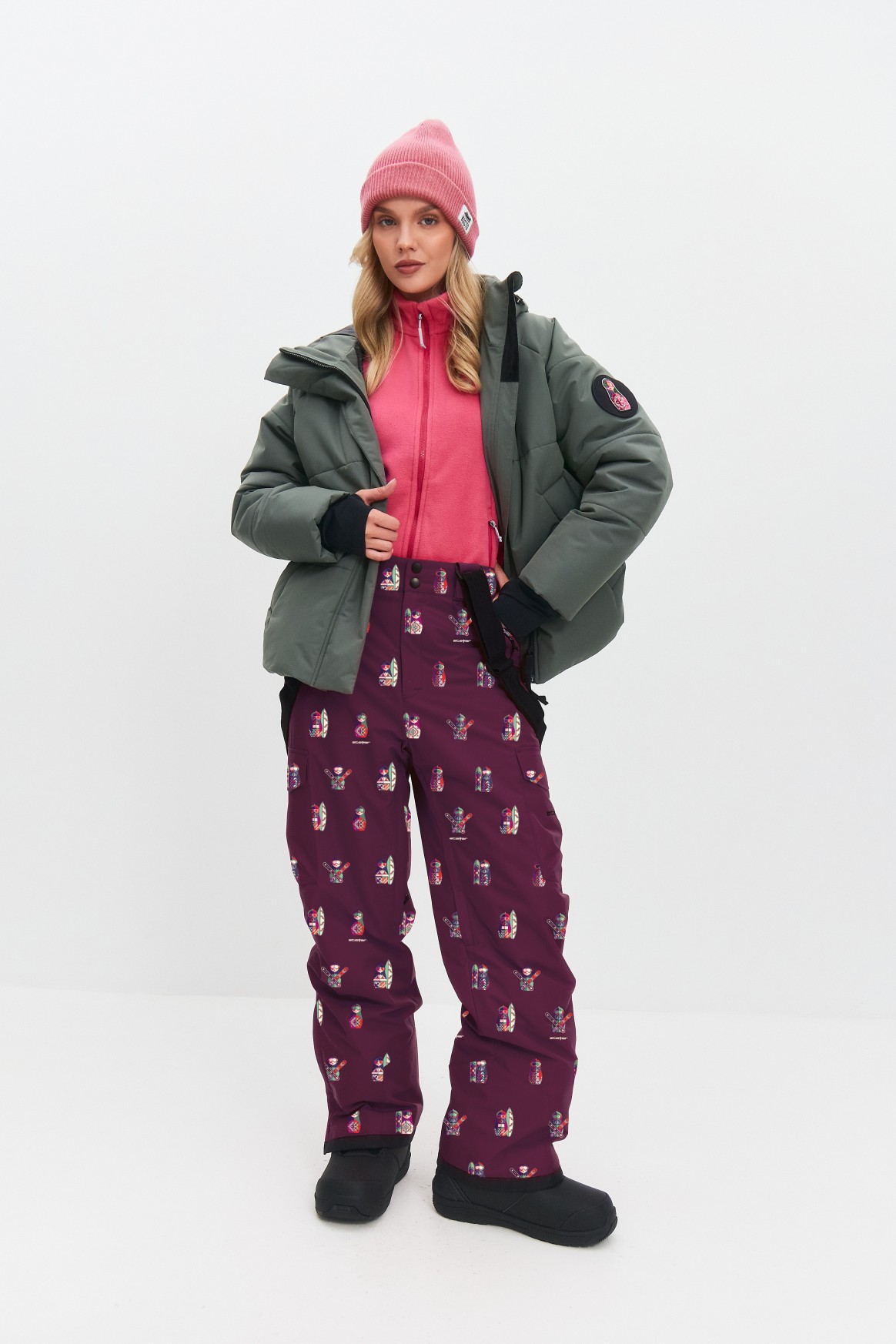 Трендовые брюки свободного кроя с утяжками на поясе могут выбрать как сноубордистки, так и горнолыжницы, предпочитающие трендовый оверсайз. Утяжки на поясе позволяют регулировать высоту посадки от высокой до расслабленной «на стиле».