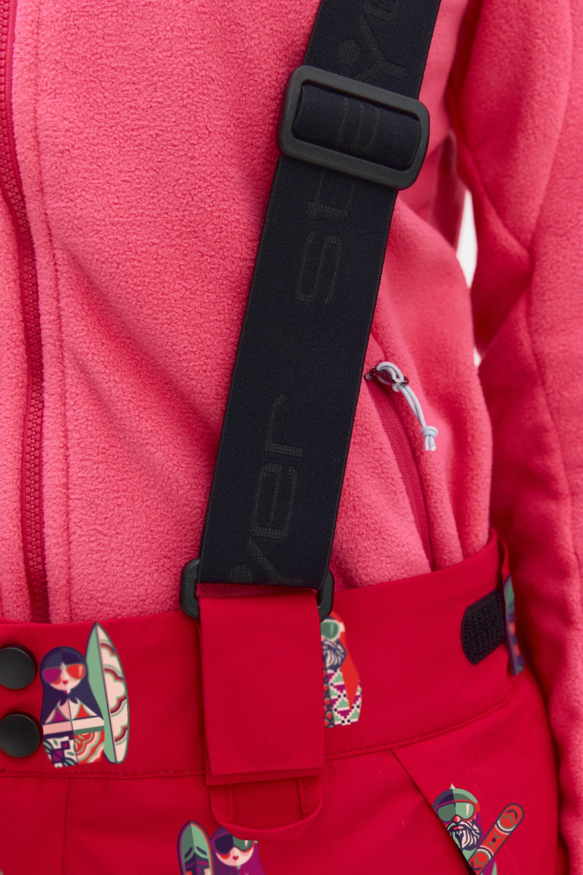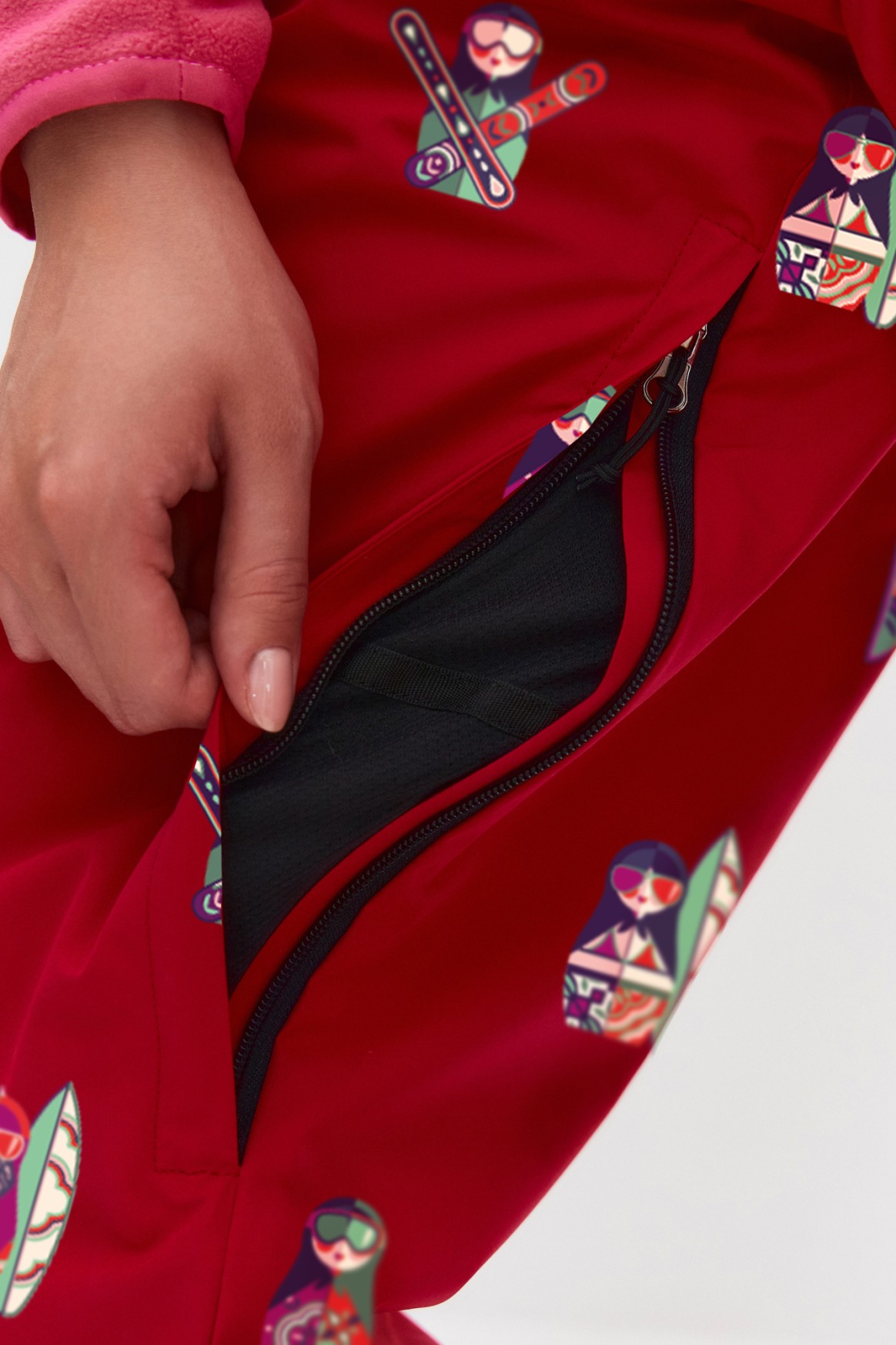 Трендовые брюки свободного кроя с утяжками на поясе могут выбрать как сноубордистки, так и горнолыжницы, предпочитающие трендовый оверсайз. Утяжки на поясе позволяют регулировать высоту посадки от высокой до расслабленной «на стиле».