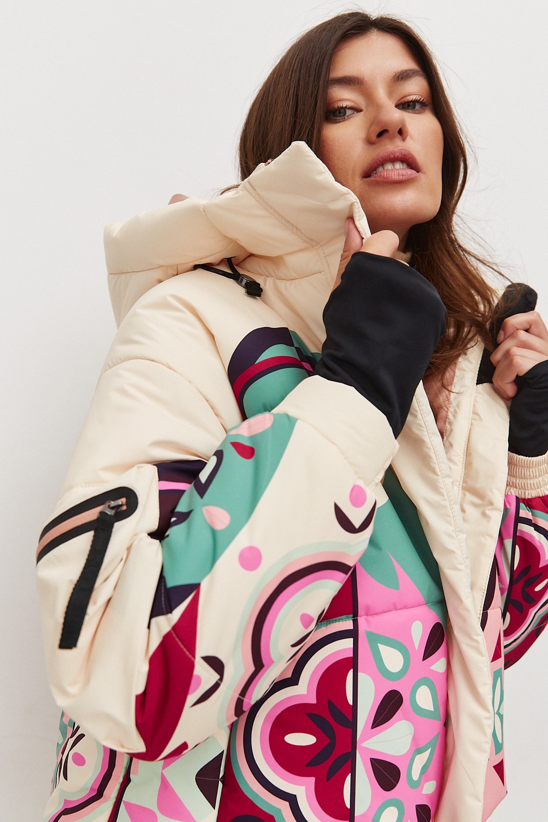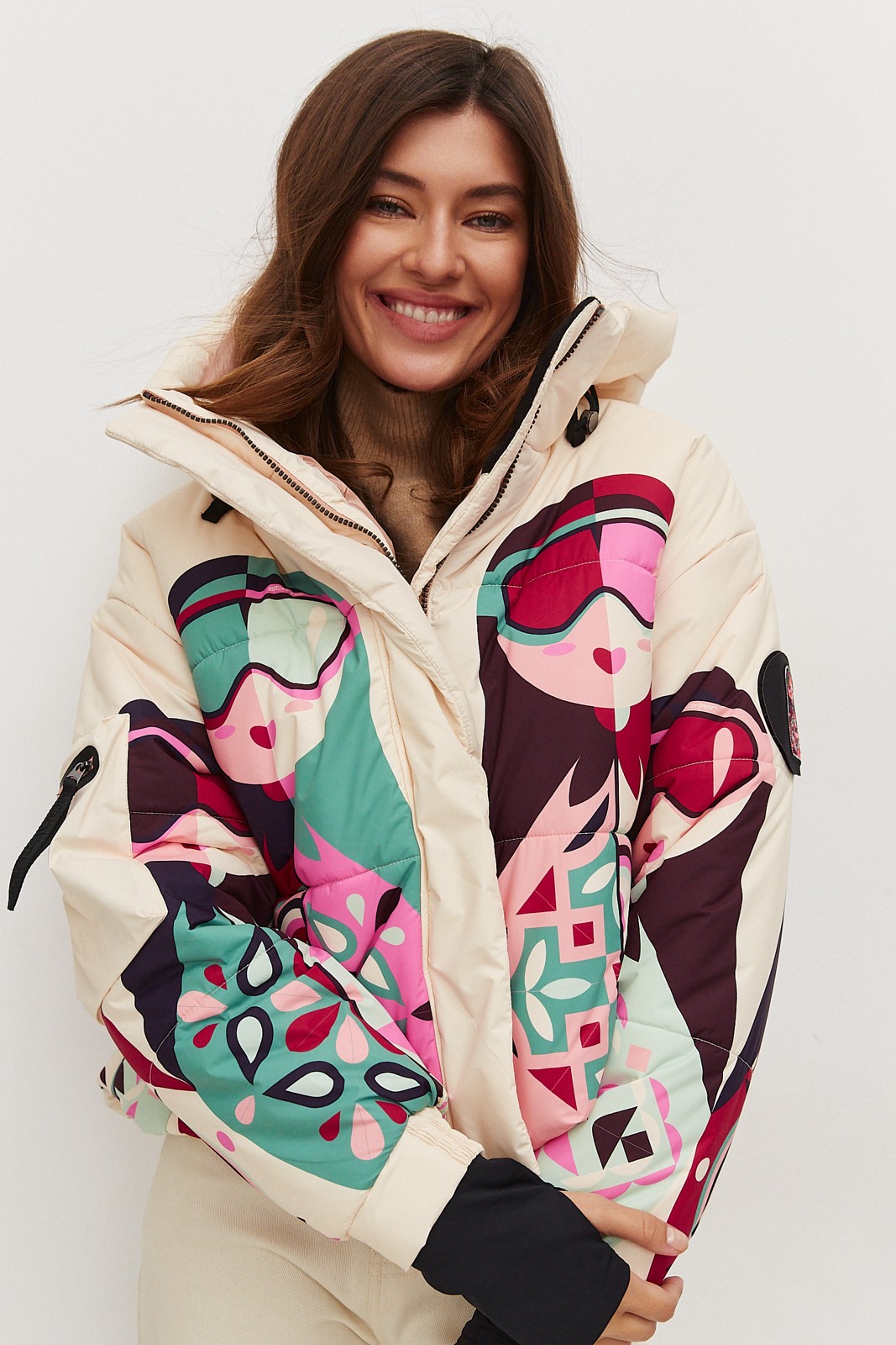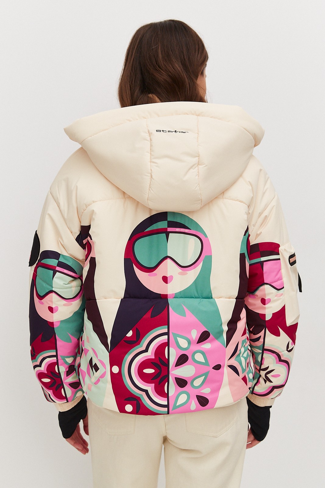 Куртка горнолыжная женская «Матрешка» с авторским принтом. Серия изделий APRÈS-SKI линейки одежды для горнолыжного спорта и отдыха, объединившей в себе традиционное искусство, современную моду и технологичность. Максимум комфорта и модности в одном изделии. Оригинальная форма и все атрибуты горнолыжной куртки сделают ваше пребывание на горнолыжном склоне максимально комфортным.