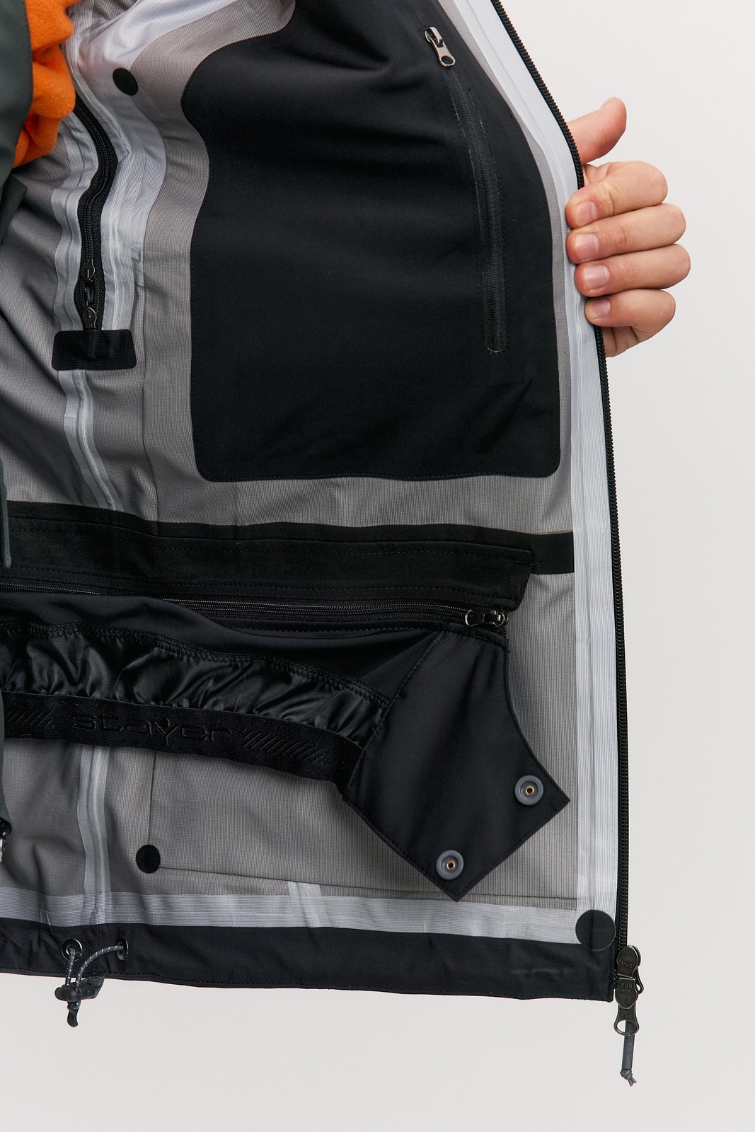 Сверху – легкая, но прочная ткань, посередине – супер-дышащая мембрана DERMIZAX 20к/25к, с внутренней стороны – сетка, защищающая мембрану от повреждений.