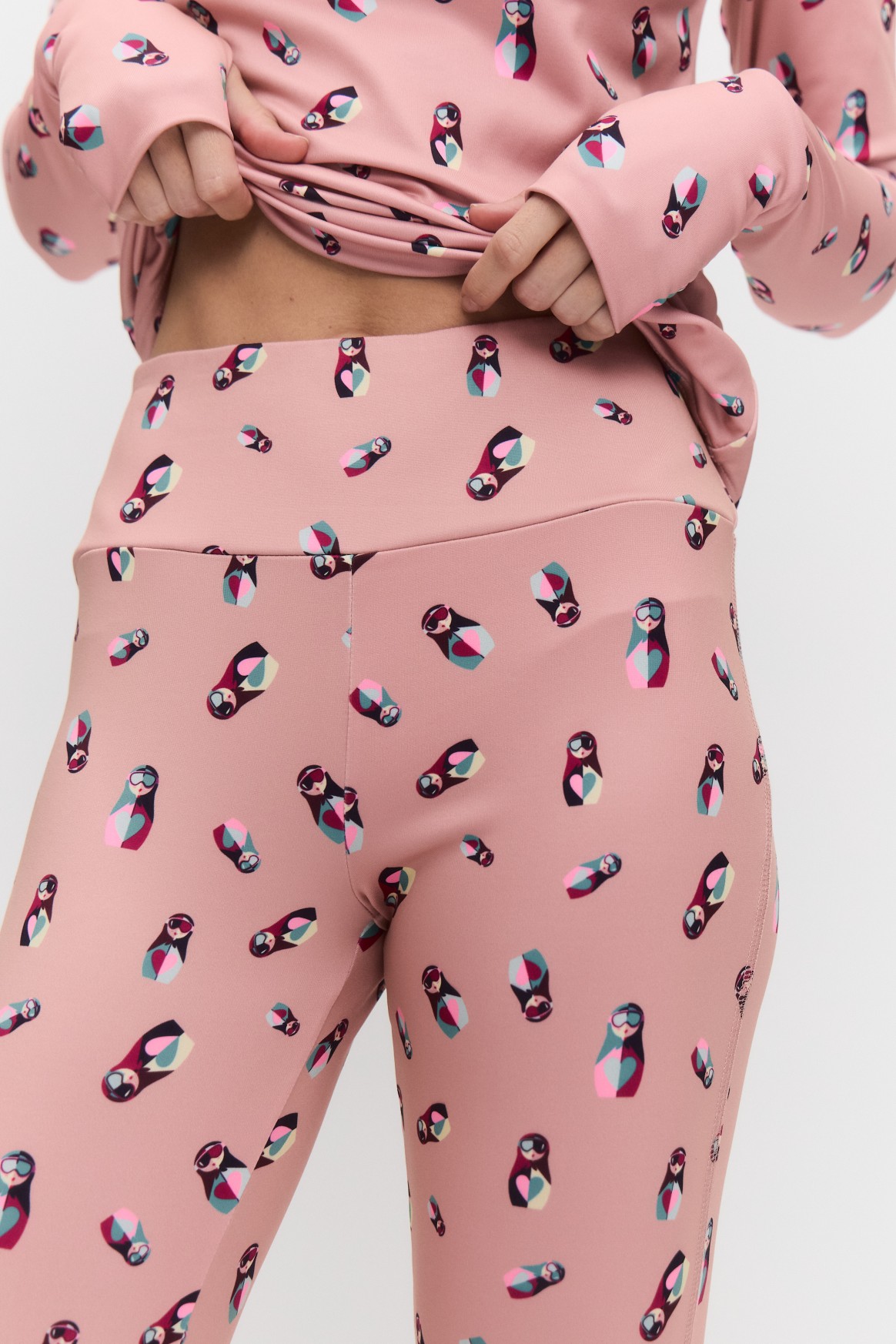 - эргономичный крой легинсов имеет плотное прилегание, препятствующее проникновению холодного воздуха под одежду и обеспечивающее подтягивающий эффект.