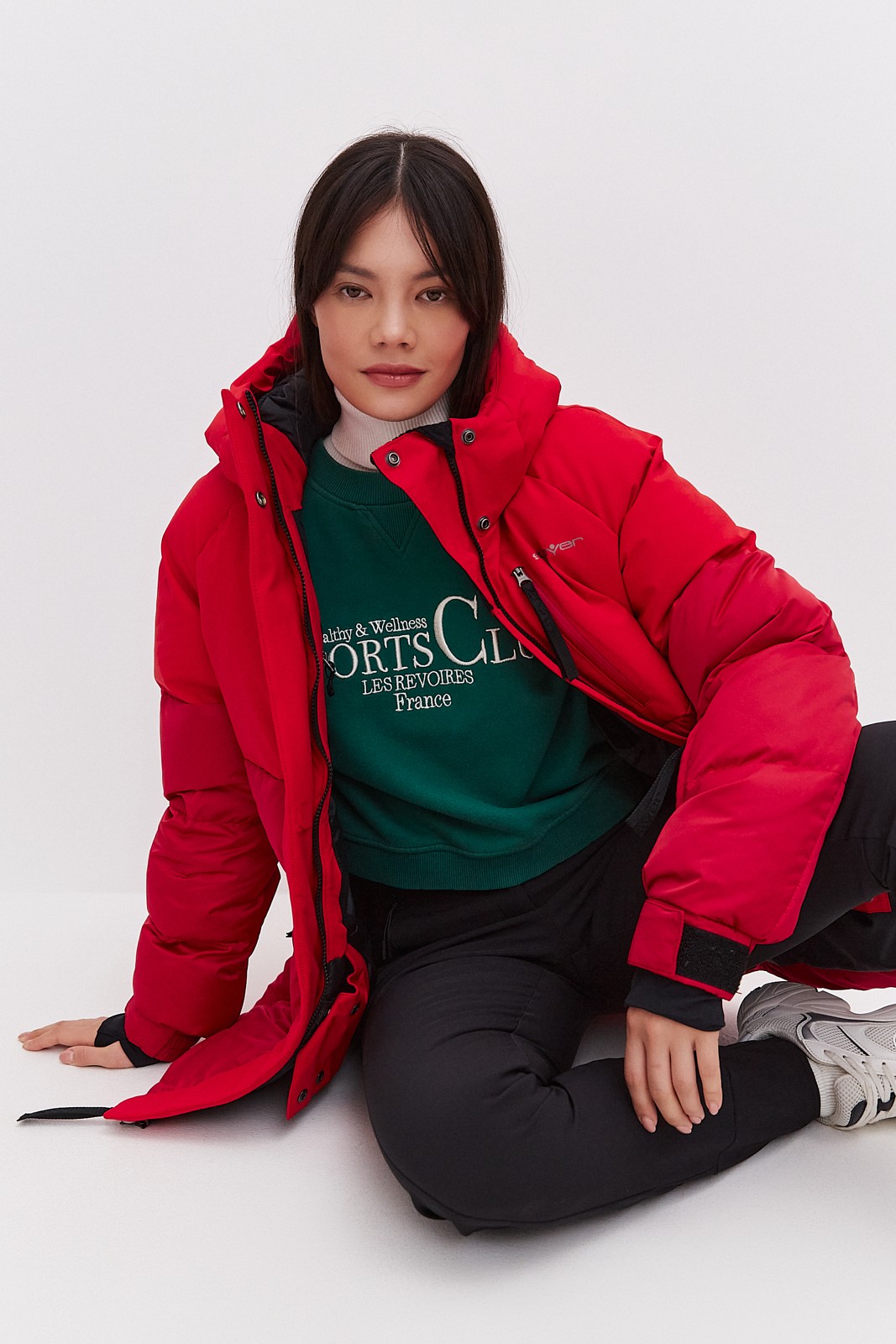 Комбинированный горнолыжный женский пуховик из двух видов ткани: плотного мембранного материала, для обеспечения надежности в зонах истирания и легкого нейлона, для обеспечения легкости и подвижности. Благодаря высокими показателями натурального утеплителя (F.P. 700), рассчитан на длительное использование в условиях низких температур.