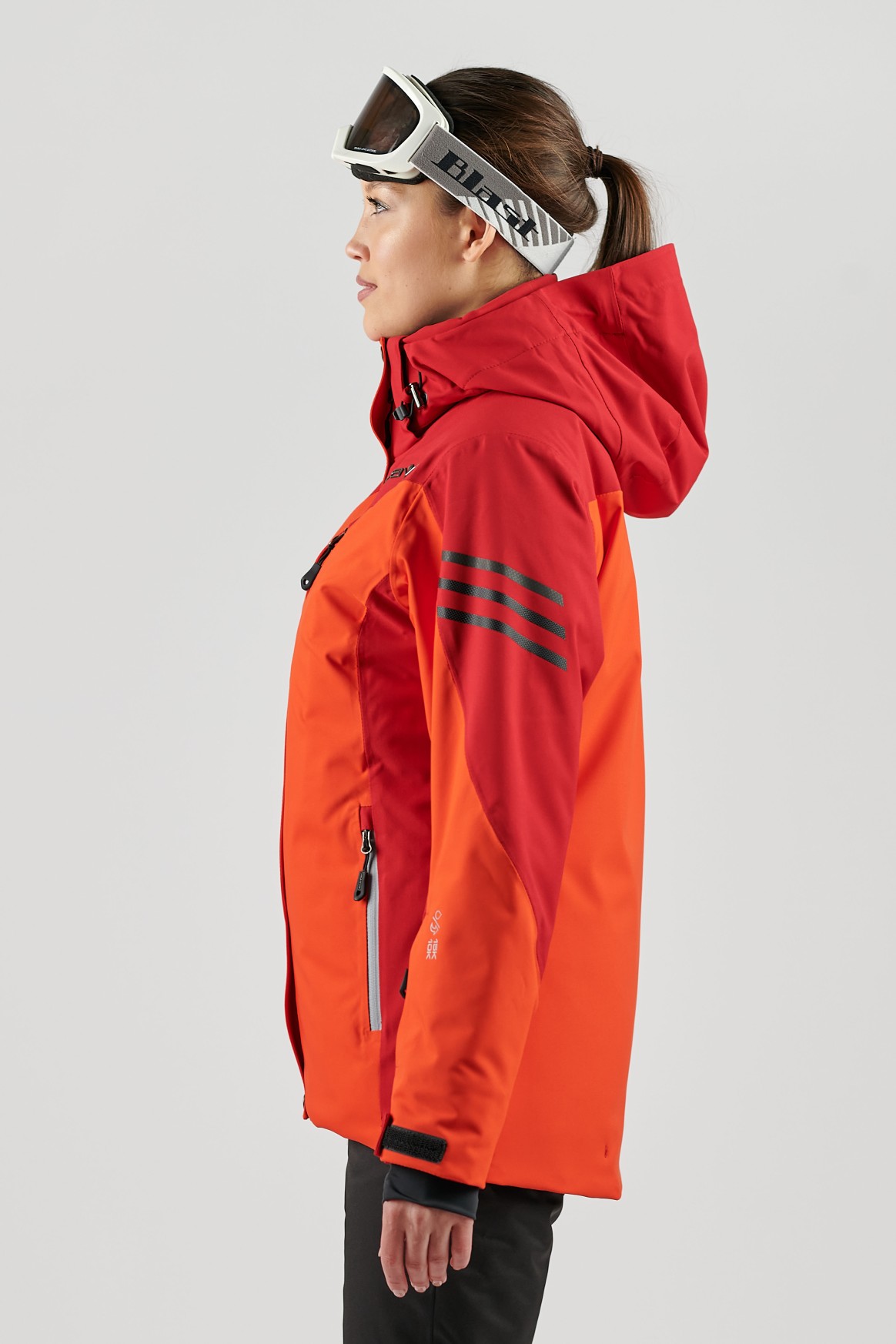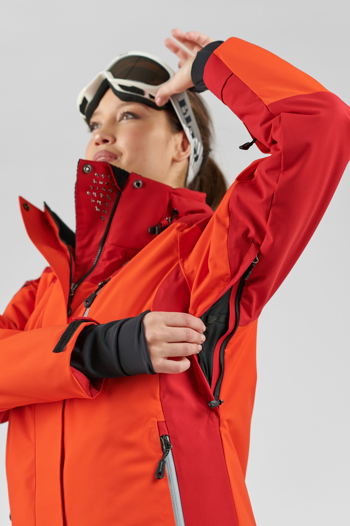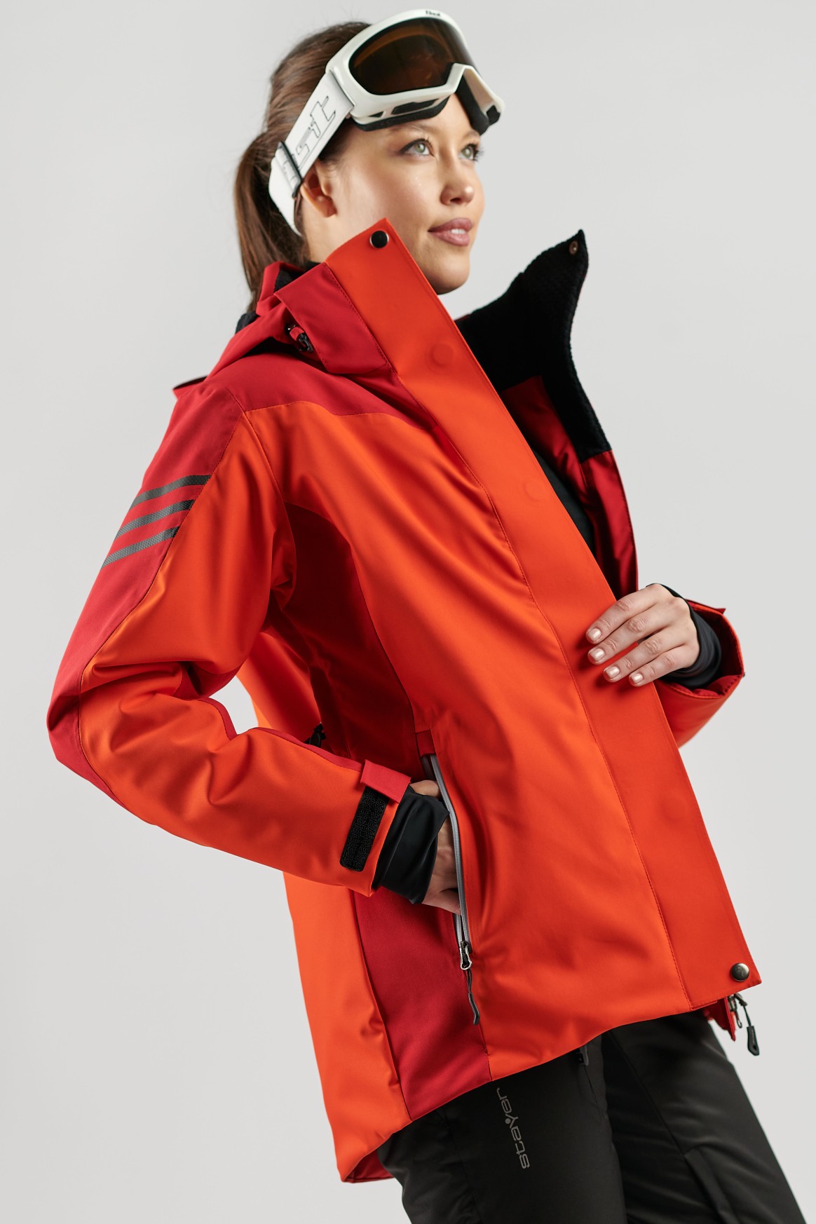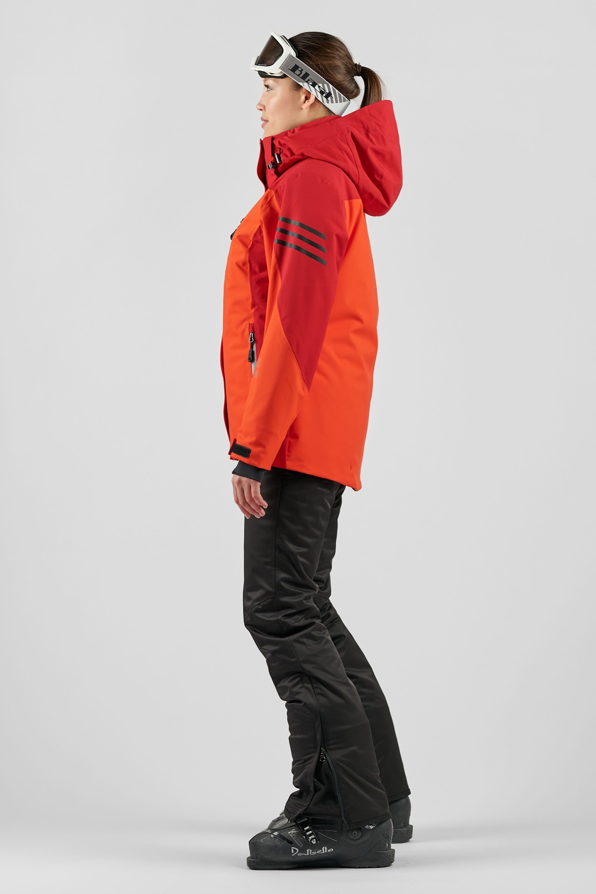 Элегантная и технологичная женская горнолыжная куртка, выполненная в лаконичном дизайне. В данной куртке используются две разные по фактуре и свойствам ткани, одна из тканей – более плотная и обеспечивает максимальную защиту в истираемых местах, вторая обеспечивает максимальную свободу за счет своей эластичности в основном объеме куртки. Профессиональный зонированный утеплитель обеспечивает комфортную теплоизоляцию. Модель имеет удобный крой, который хорошо сидит на любой фигуре и полный набор функциональных элементов, которые обеспечивают комфортное длительное пребывание на горнолыжном склоне.