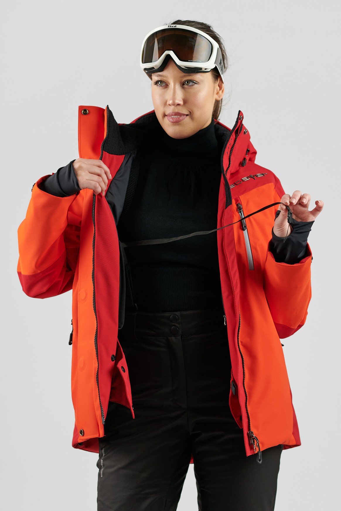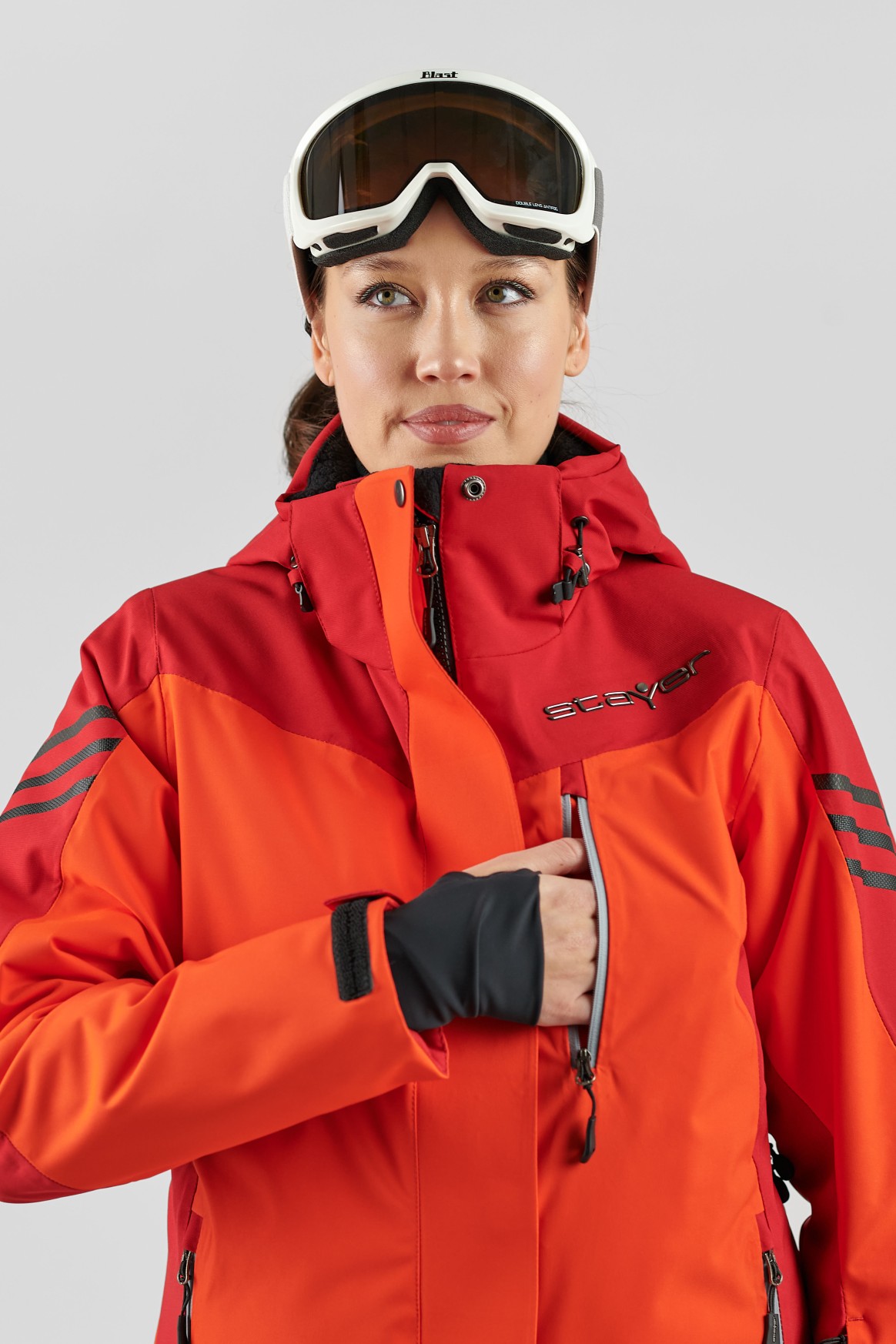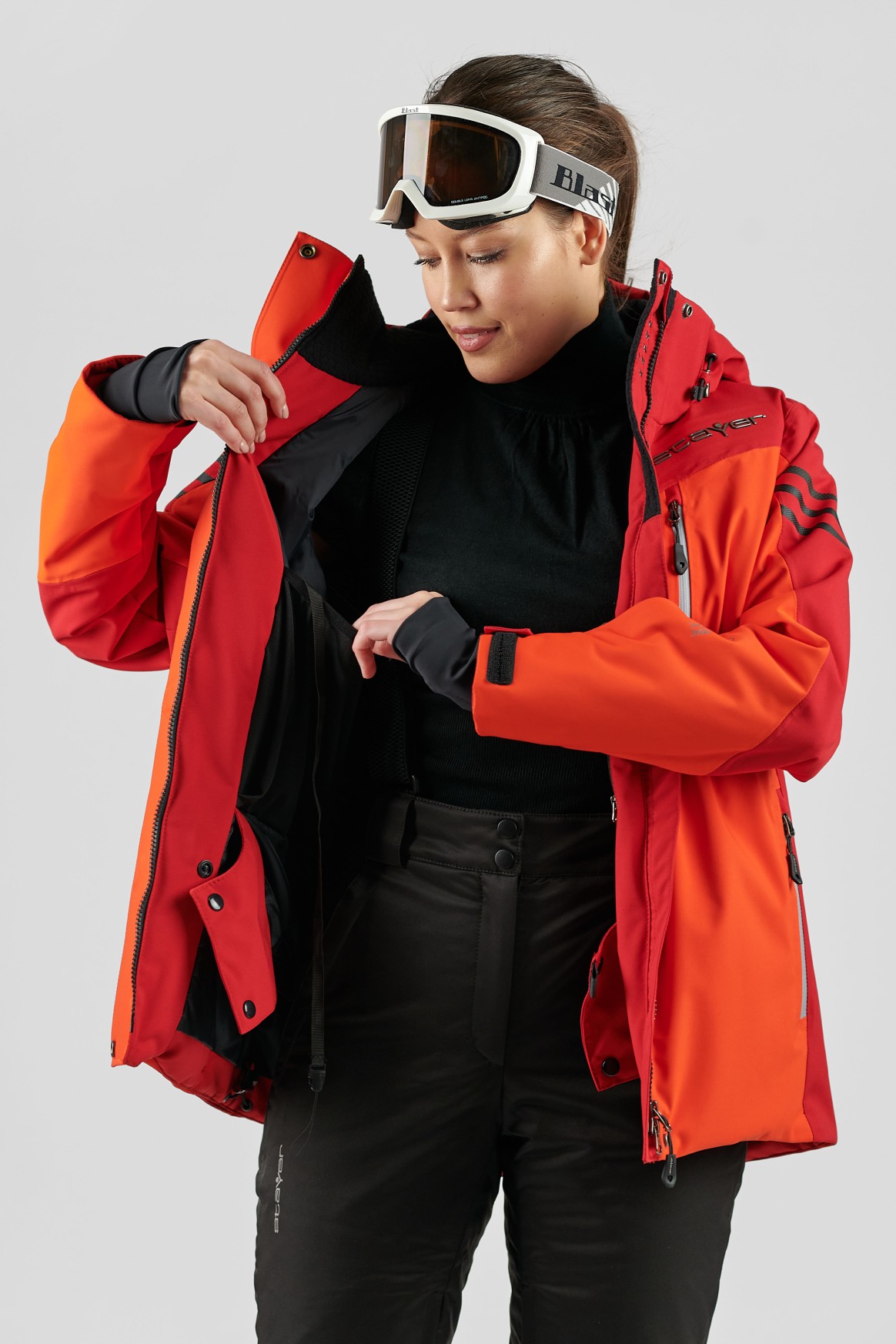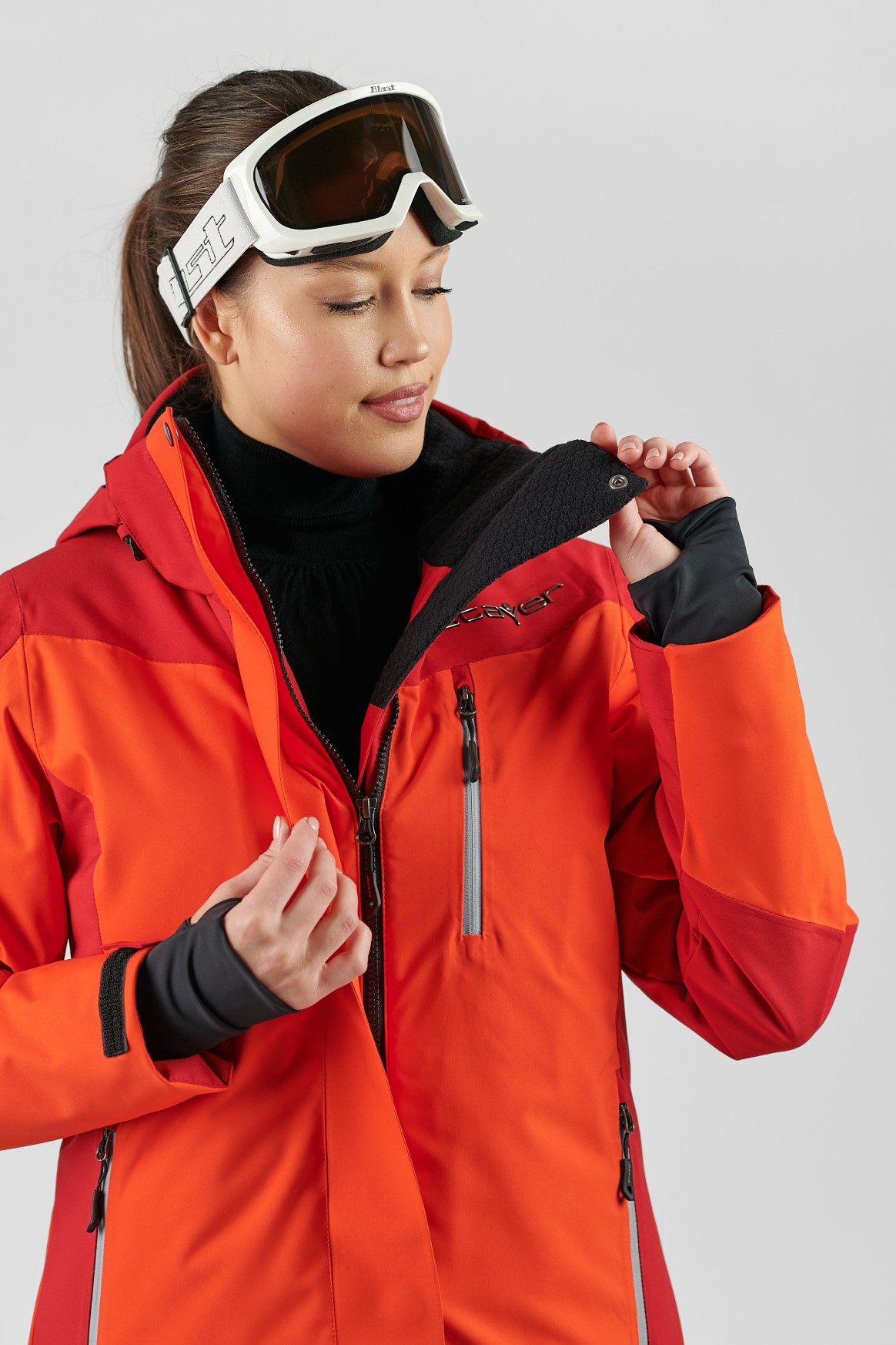 Элегантная и технологичная женская горнолыжная куртка, выполненная в лаконичном дизайне. В данной куртке используются две разные по фактуре и свойствам ткани, одна из тканей – более плотная и обеспечивает максимальную защиту в истираемых местах, вторая обеспечивает максимальную свободу за счет своей эластичности в основном объеме куртки. Профессиональный зонированный утеплитель обеспечивает комфортную теплоизоляцию. Модель имеет удобный крой, который хорошо сидит на любой фигуре и полный набор функциональных элементов, которые обеспечивают комфортное длительное пребывание на горнолыжном склоне.