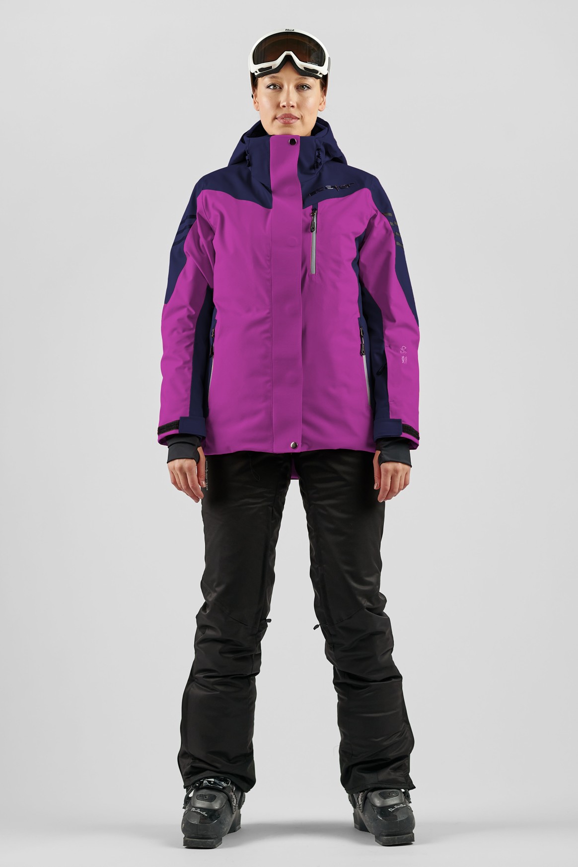 Элегантная и технологичная женская горнолыжная куртка, выполненная в лаконичном дизайне. В данной куртке используются две разные по фактуре и свойствам ткани, одна из тканей – более плотная и обеспечивает максимальную защиту в истираемых местах, вторая обеспечивает максимальную свободу за счет своей эластичности в основном объеме куртки. Профессиональный зонированный утеплитель обеспечивает комфортную теплоизоляцию. Модель имеет удобный крой, который хорошо сидит на любой фигуре и полный набор функциональных элементов, которые обеспечивают комфортное длительное пребывание на горнолыжном склоне.