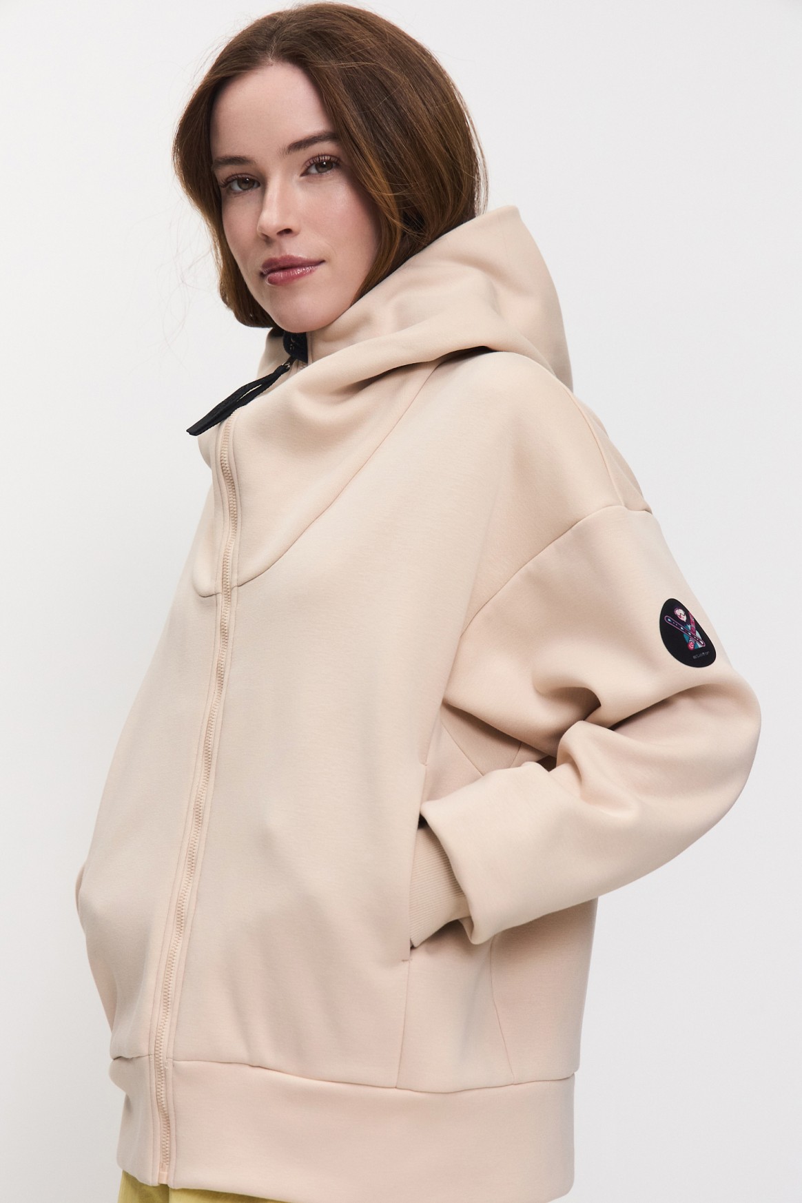 Джемпер из мягкого Еврофлиса, свободной посадки, с необычным кроем и небольшой вышивкой на груди– идеально дополнит твой повседневный лук и согреет прохладными вечерами!